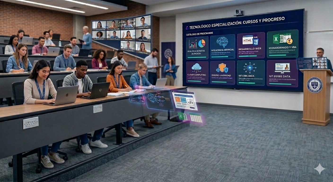 Conoce algunas de nuestras soluciones aquí: ¡Hola mundo!Ofrecemos programas de especialización en tecnologías digitales como inteligencia artificial, analítica de datos y automatización, diseñados para desarrollar habilidades prácticas que impulsen la innovación y la productividad en las organizaciones.
